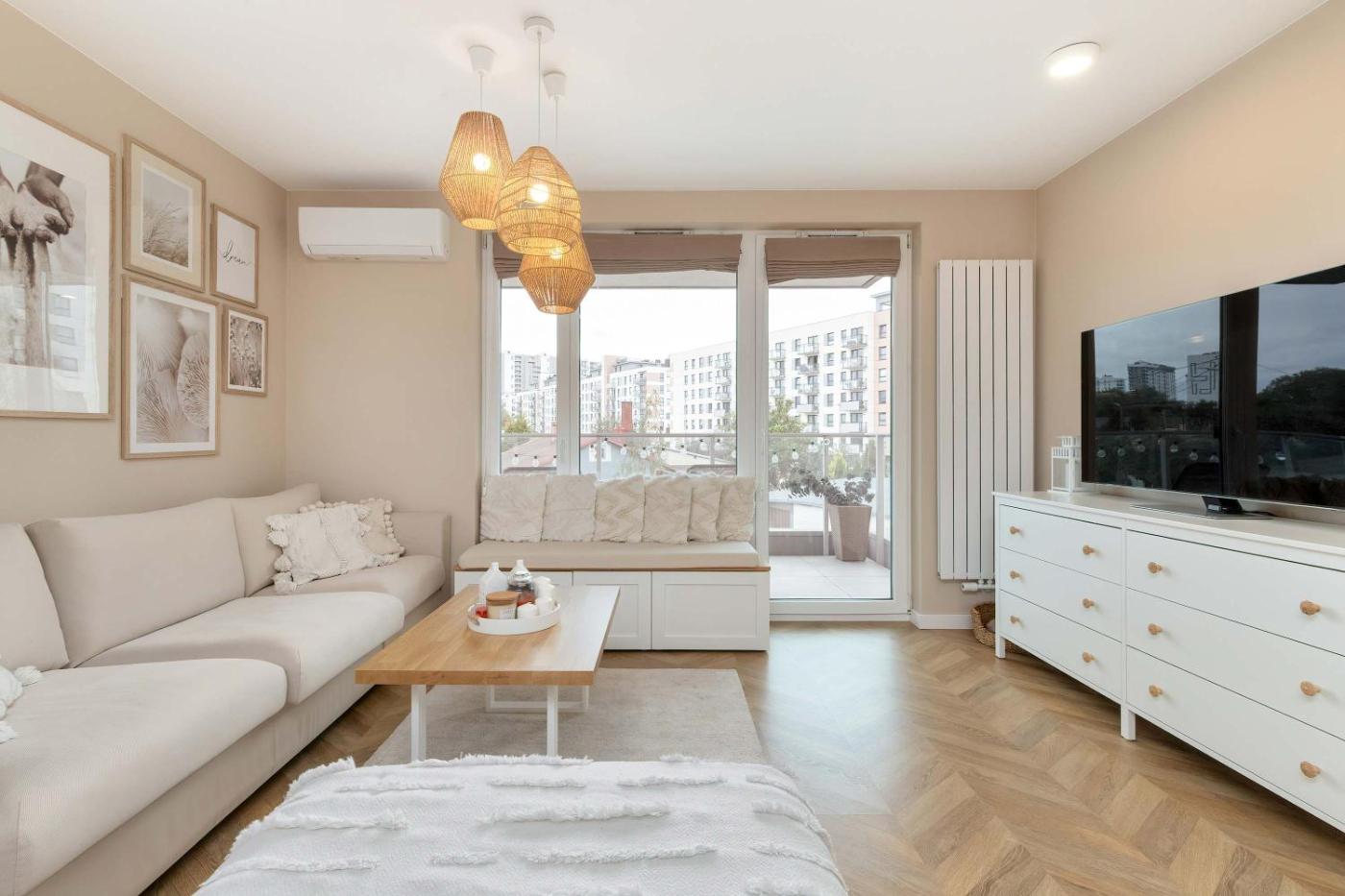 Beige Apartment in Gdańsk with Air Conditioned Living Room, Parking and Desk by Renters Prestige